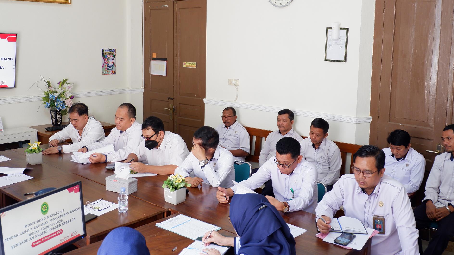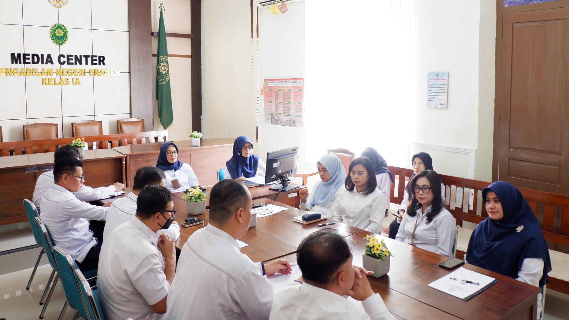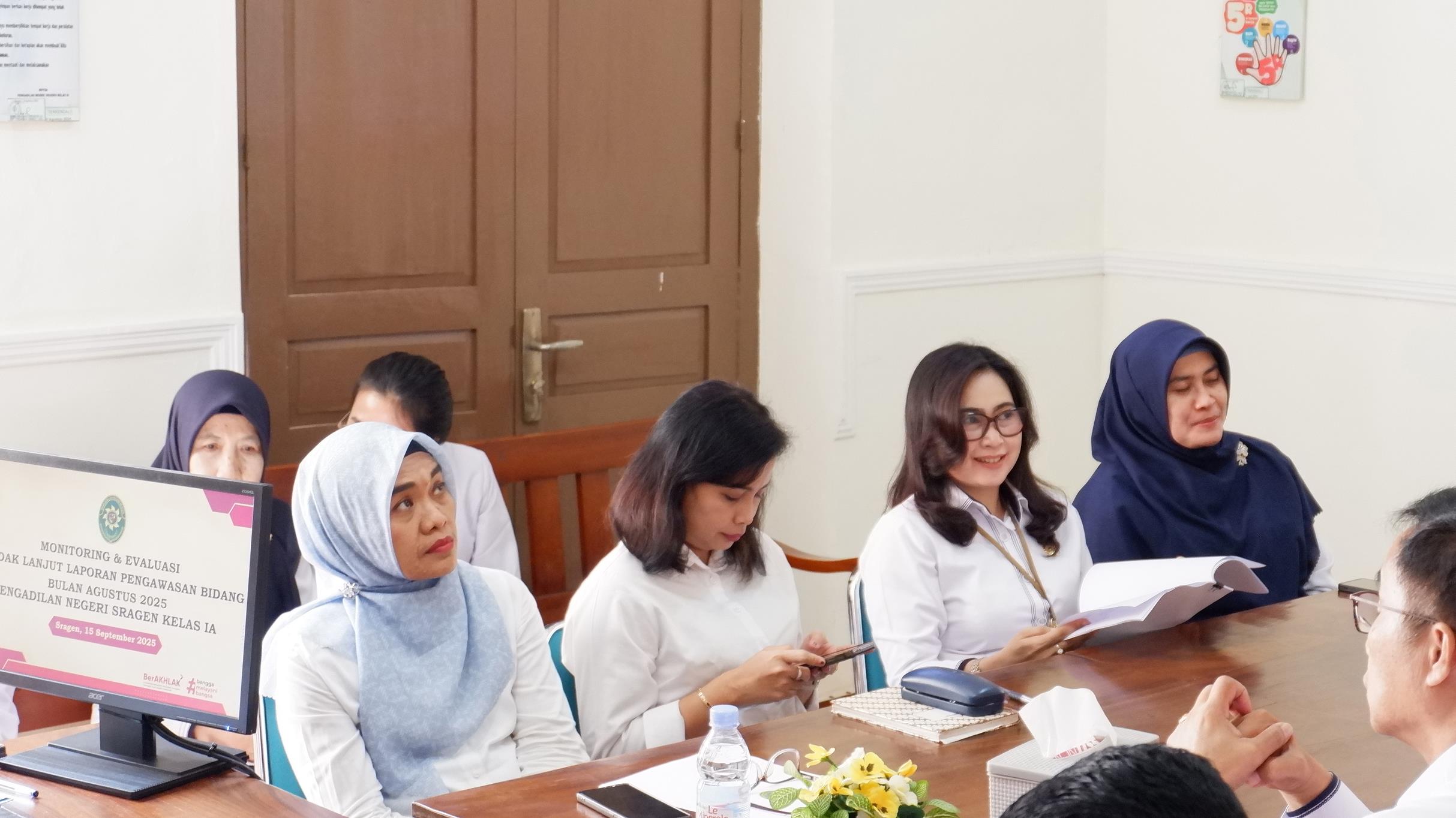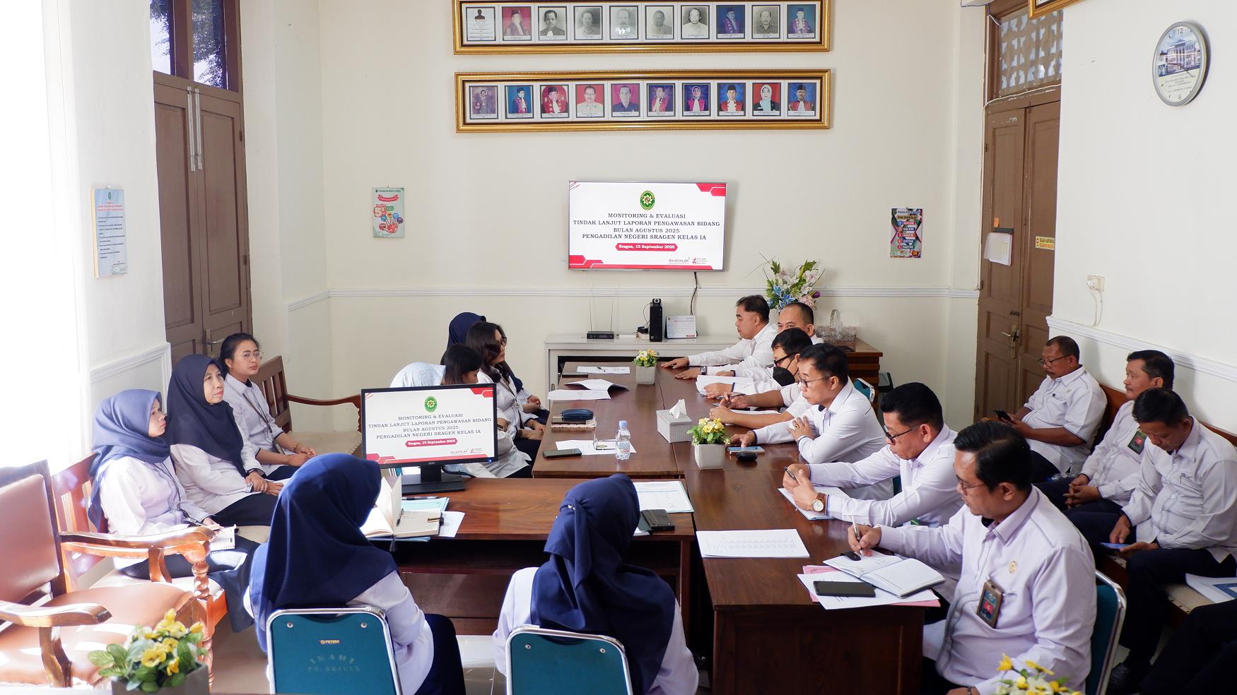 Sragen, 15 September 2025 - Bertempat di Ruang Media Center Pengadilan Negeri Sragen Kelas IA, telah diadakan Rapat Monitoring dan Evaluasi Tindak Lanjut Laporan Pengawasan Bidang Bulan Agustus 2025. Rapat tersebut dipimpin langsung oleh Ibu Sri Harsiwi, S.H., M.H. selaku Ketua Pengadilan Negeri Sragen Kelas IA dan diikuti oleh para Hakim, Panitera, Sekretaris, Panitera Muda dan Kepala Sub Bagian.